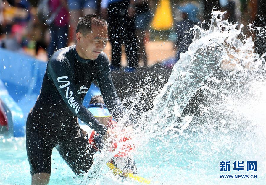 8月9日,市民在南宮五洲植物樂園戶外戲水區(qū)游玩。近期,在做好新冠肺炎疫情防控的前提下,位于北京市豐臺(tái)區(qū)的南宮五洲植物樂園戶外戲水區(qū)對(duì)外開放。市民在戲水的同時(shí)還可以在沙灘上畫沙畫、在新游樂項(xiàng)目“叢林網(wǎng)繩”里穿梭跳躍,豐富暑期生活。新華社記者任超攝。