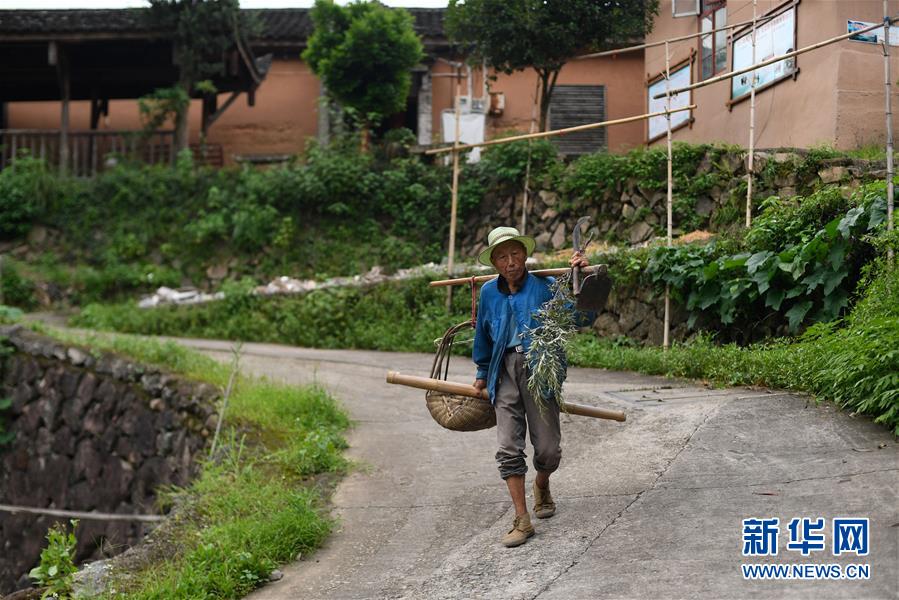 在浙江省麗水市松陽縣三都鄉(xiāng)楊家堂村,村民在外勞作后回家(7月17日攝)。新華社記者黃宗治攝。