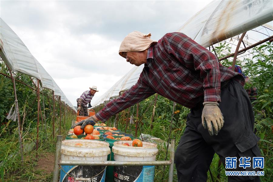 8月11日,在寧安市慶雨蔬菜專業(yè)合作社蔬菜產(chǎn)業(yè)園基地,工人把剛采摘下來的西紅柿裝入桶中準備運走。近年來,黑龍江省寧安市把設施蔬菜作為精準扶貧的主導產(chǎn)業(yè)來抓,組織吸納貧困戶貸資加入產(chǎn)業(yè)合作社,帶動貧困戶脫貧增收。寧安市將全市500余戶貧困戶的小額信貸資金集中投放到寧安市慶雨蔬菜專業(yè)合作社,建設蔬菜產(chǎn)業(yè)園基地,在帶動貧困戶脫貧增收的同時,壯大合作社蔬菜產(chǎn)業(yè)。新華社記者王建威攝。