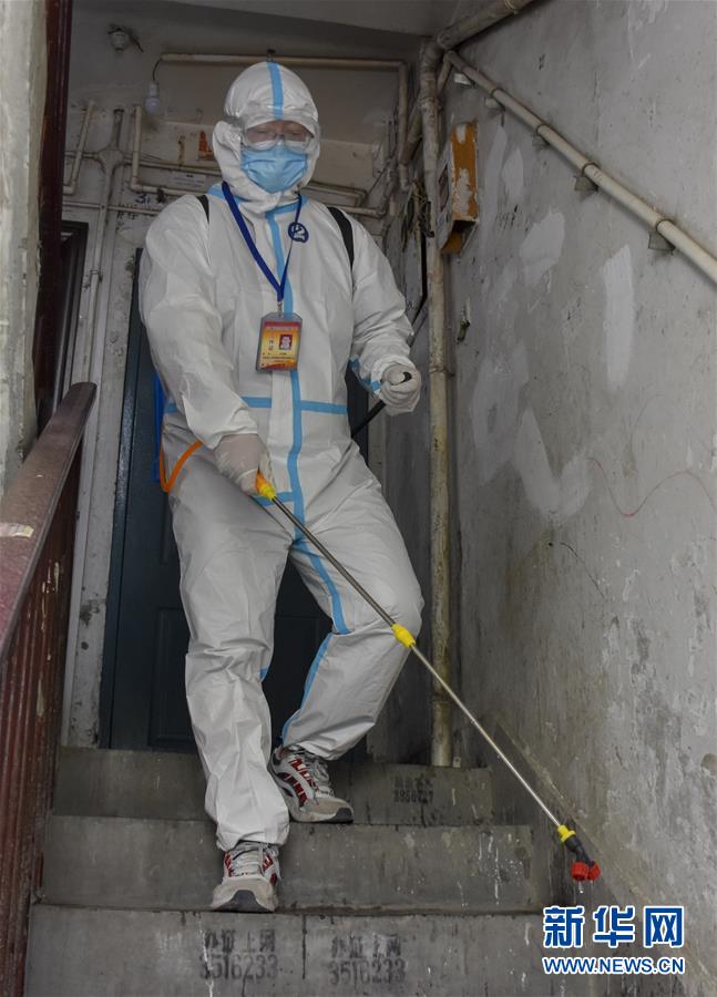 老王和同事們要完成轄區(qū)居民的登記、備案、生活物資配送、困難訴求統(tǒng)計和跟蹤服務(wù)等工作?!扒趧?wù)員”老王不僅要做好服務(wù),每天還要背上消毒工具,對小區(qū)地面、門廊、門把手、樓道、樓梯扶手反復(fù)噴灑,濃郁的消毒水味雖然刺鼻,但此刻更能讓居民感到安心。