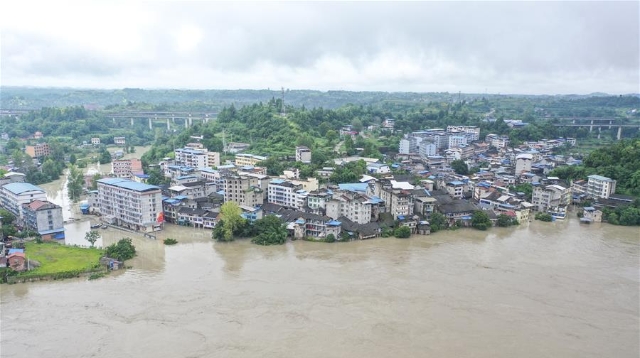 受強降雨影響,涪江潼南段迎來過境洪水。截至12日下午5時,涪江潼南城區(qū)段最高水位238.5米,超警戒水位0.5米,低于保證水位(240米)。