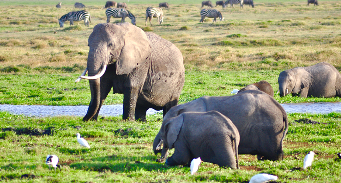 肯尼亞東南部,與坦桑尼亞接壤的安博賽利國家公園,距內(nèi)羅畢240公里,因水草豐美而成為野生非洲大象的樂園。