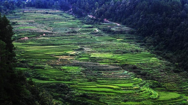 時下,重慶市彭水苗族土家族自治縣鞍子鎮(zhèn)大林村的梯田景色迷人,構(gòu)成一幅幅山鄉(xiāng)田園美景。