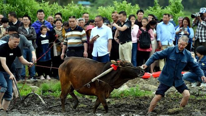 4月15日,福建省連城縣客家古村培田村舉辦一年一度的春耕節(jié),犁春牛、插秧、捕魚等春耕民俗活動聯(lián)袂上演。