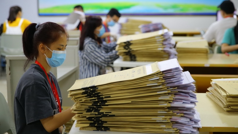 探秘2020年海南高考評(píng)卷場(chǎng) 考卷掃描錄入井然有序