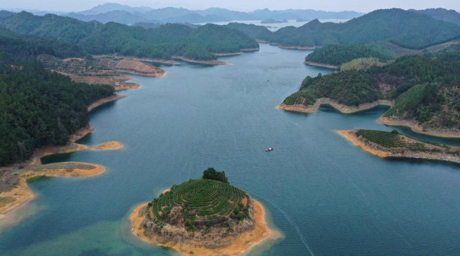 當(dāng)日,浙江省淳安縣春茶全面開采,千島湖上星星點點的“島嶼茶園”浮在碧波之上,如夢似幻。