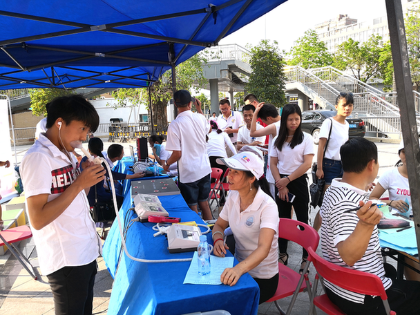 本次《大講堂》活動(dòng)走進(jìn)觀瀾福誠(chéng)街道章閣社區(qū),向社區(qū)居民傳遞健康。白衣天使們不顧炎熱的天氣,用肺活量測(cè)試儀、握力測(cè)試儀、縱跳計(jì)測(cè)試儀等設(shè)備為社區(qū)居民進(jìn)行免費(fèi)體測(cè);深圳獅子會(huì)代繼宏先生現(xiàn)場(chǎng)為大家進(jìn)行了糖尿病預(yù)防知識(shí)的宣教。據(jù)悉,深圳獅子會(huì)致力于關(guān)愛社區(qū)群眾,傳遞健康環(huán)保知識(shí),為社區(qū)居民舉辦健康大講堂,推動(dòng)健身熱潮,并組織社區(qū)居民進(jìn)行體質(zhì)監(jiān)測(cè)等多種形式的知識(shí)宣講,促進(jìn)社區(qū)和諧建設(shè)。