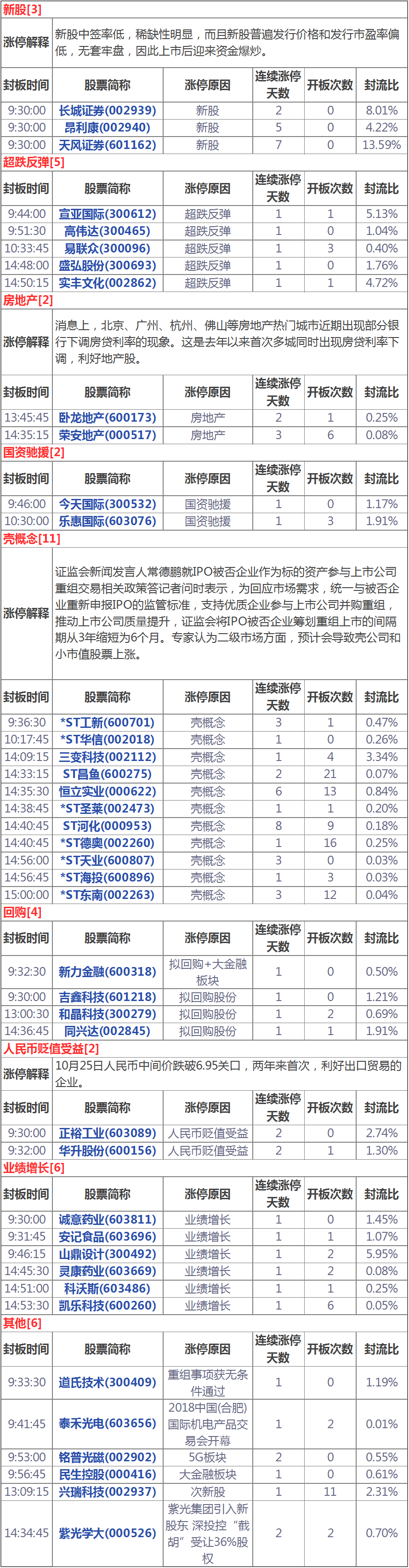 漲停分析:兩市單邊下行 ST板塊逆勢上漲 (10月29日)