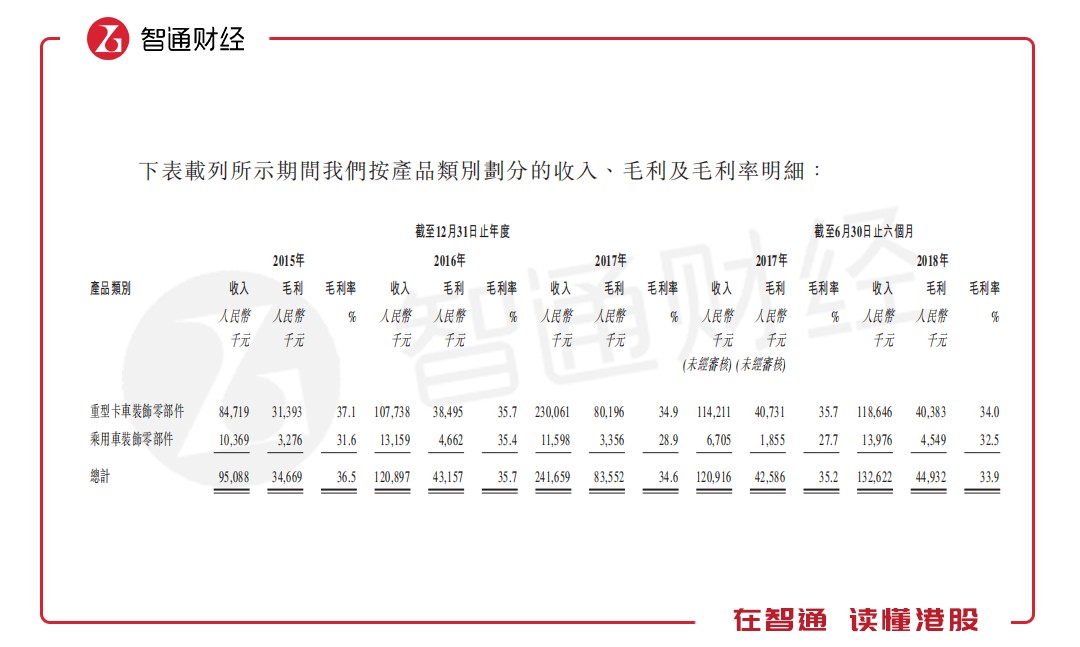 此外,天瑞在招股書中指出,就公司近期財(cái)務(wù)表現(xiàn)而言,公司的收入從截至2017年10月31日止10月的約1.97億元減至截至2018年10月31日止10個(gè)月的約1.92億元,略微減少為2.6%。然而,公司截至2018年10月31日止4個(gè)月的毛利率為35.8%,略高于上年同期的34.0%。鑒于收入減少并不明顯,以及與2018年上半年相比,公司截至2018年10月31日止4個(gè)月實(shí)現(xiàn)穩(wěn)定的毛利率及月平均毛利,因此并無(wú)跡象顯示公司的重型卡車裝飾零部件業(yè)務(wù)分部會(huì)顯著下跌。