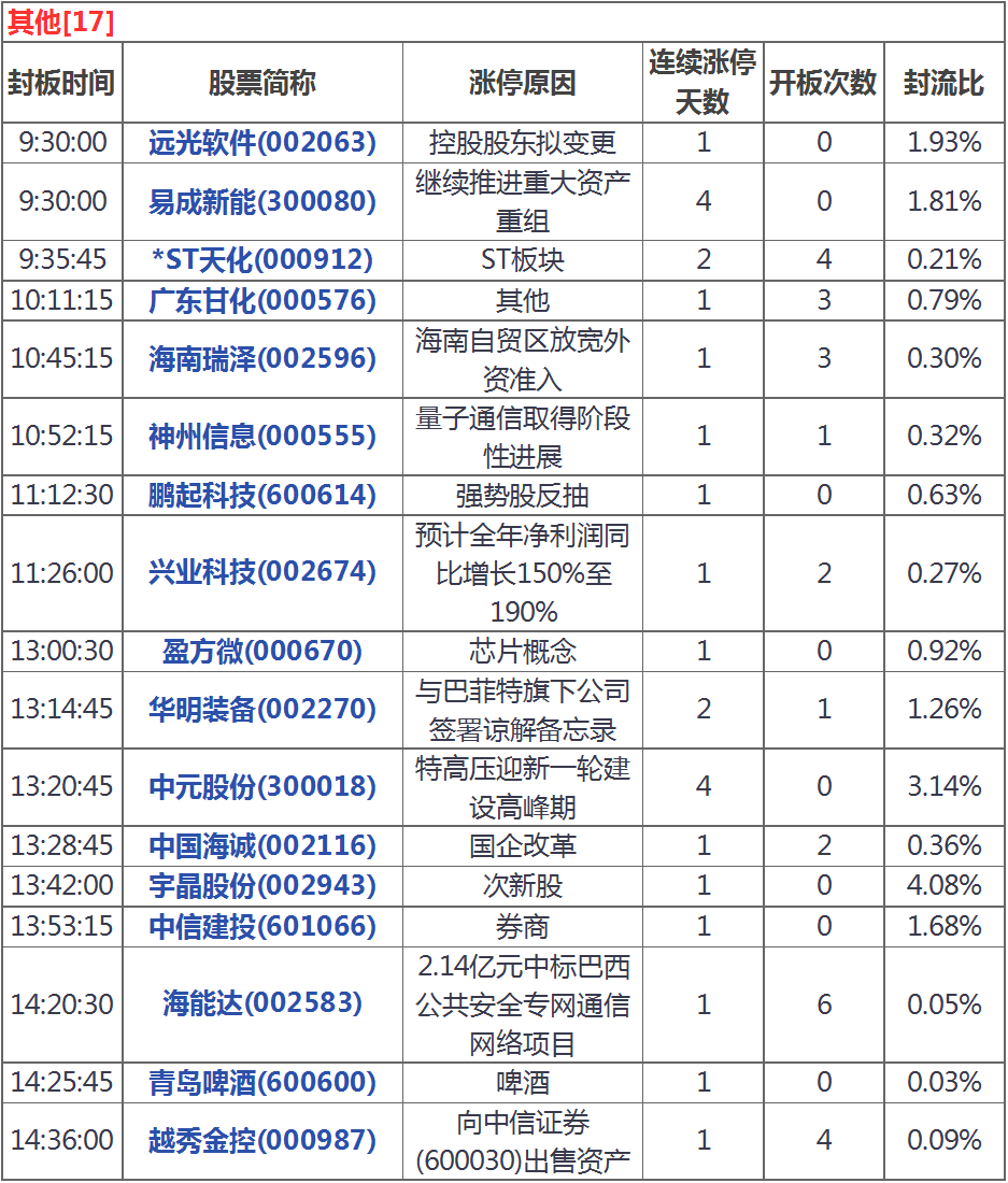 今天漲停家數(shù)較上一交易日有所增加,兩市51家漲停;跌停8家。成交量方面,滬市成交1374億元,深市成交1822億元,兩市總成交額約為3196元,較上一交易日放量365億元。盤(pán)面上,白酒、工業(yè)互聯(lián)網(wǎng)、券商導(dǎo)等板塊漲幅居前,煤炭、超導(dǎo)等板塊跌幅居前。