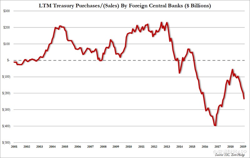 根據(jù)TIC數(shù)據(jù)顯示,外國投資者連續(xù)第10個(gè)月和過去13個(gè)月中的12個(gè)月賣出美國股票,創(chuàng)歷史新高: