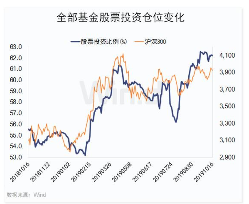 Wind數(shù)據(jù)顯示,截止10月16日,在全部3307只持有股票的基金中,股票投資比例為62.21%,下半年來累計(jì)增倉3.59個(gè)百分點(diǎn)。