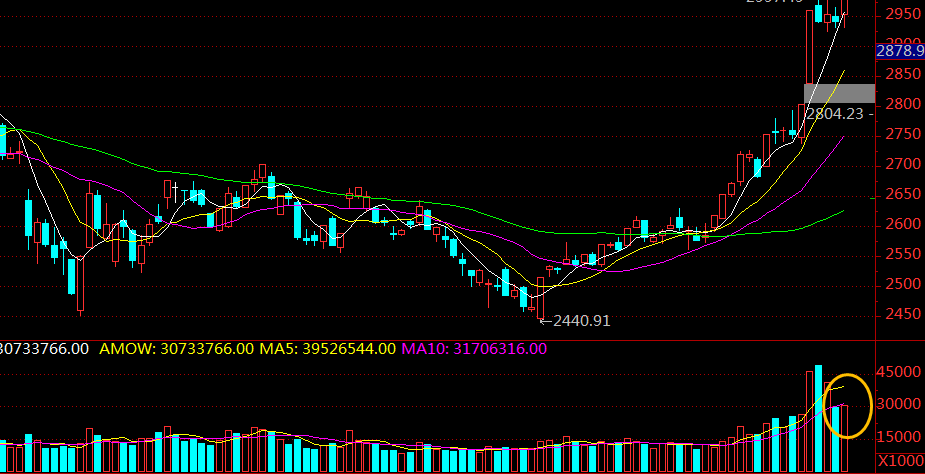 周四周五市場成交量較周初有較大幅度的回落,在高位股分批次殺跌的背景下,市場情緒高點(diǎn)已過。