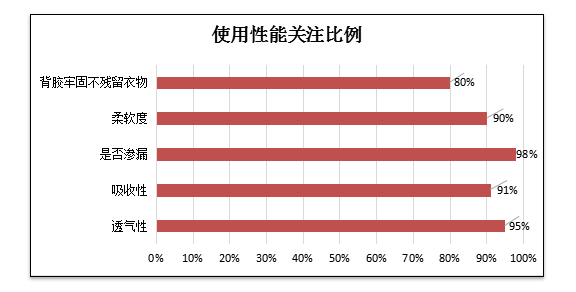 依據前期消費者調查顯示,女性消費者除了擔心衛(wèi)生巾產品的安全問題,還會關注其吸附量及表面的干爽程度等使用感受,即衛(wèi)生巾標準要求的滲入量及吸水倍率指標。