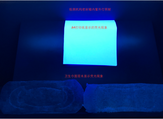 下圖為含有熒光增白物質的紙張與衛(wèi)生巾樣品測試對比圖