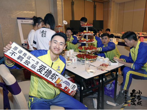 參加球迷見面會的排球運(yùn)動員們在見到香酥可口的小龍蝦后,都忍不住立馬品嘗,對龍蝦的味道是贊不絕口,并主動和小龍蝦共同合影留戀。