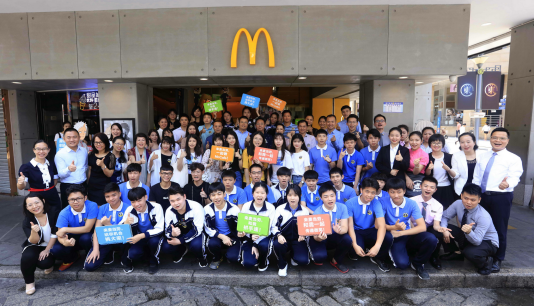 麥當勞2018全國招聘周深圳新聞發(fā)布會,現(xiàn)場體驗學生代表合影
