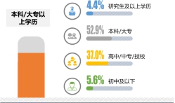 本次調研中,家政公司消費者中,31歲-45歲是主要消費者,占比55.6%,31歲以上的消費者占比為67.4%。;57.4%的受訪者學歷為本科/大專及以上 。