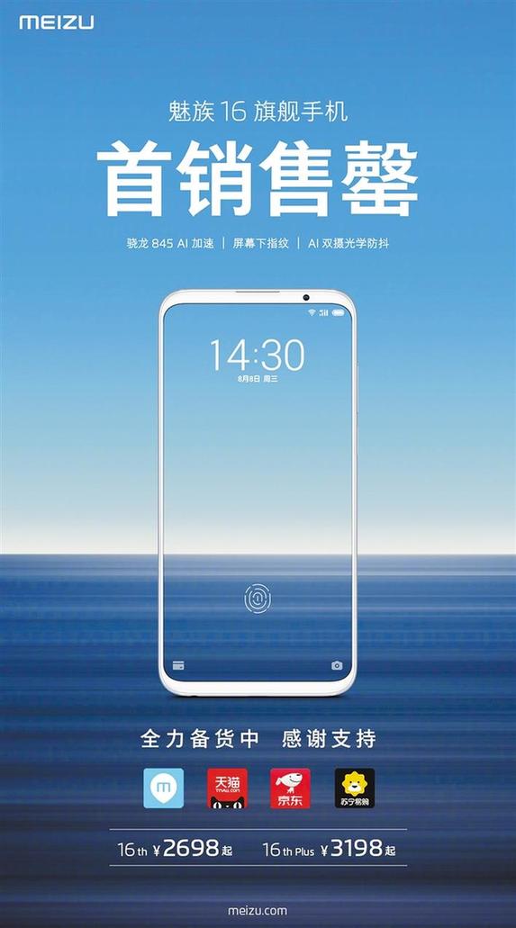 8月20日魅族16th線上線下正式開售,開售不到1秒鐘,魅族16th系列全平臺秒售罄。
