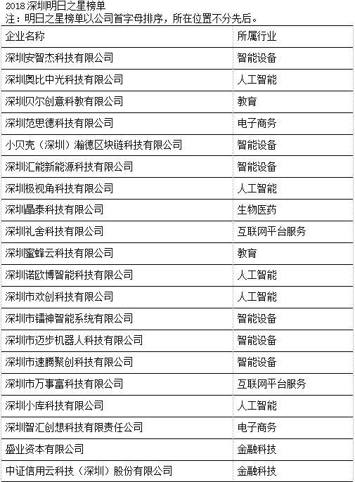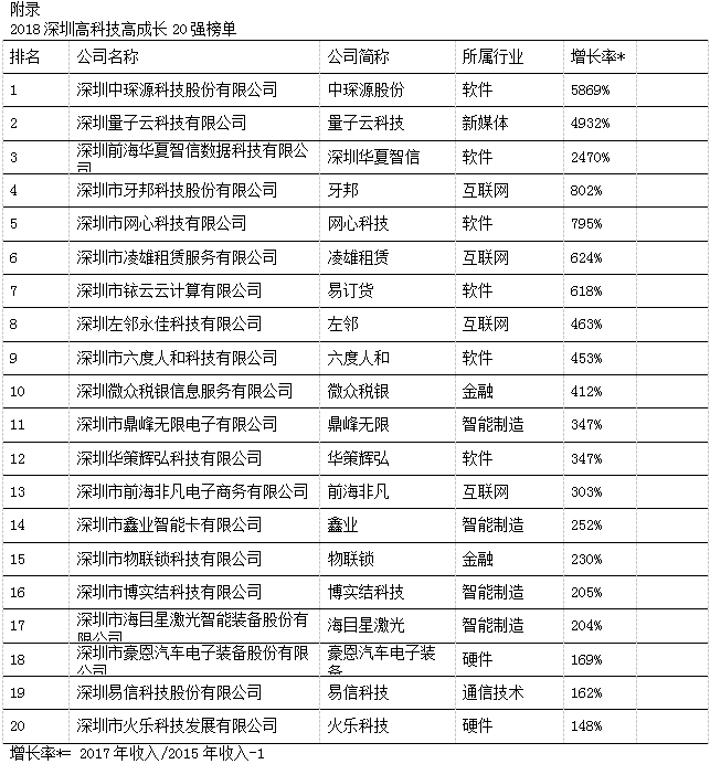 深圳高科技高成長20強暨明日之星獲獎企業(yè)榜單揭曉