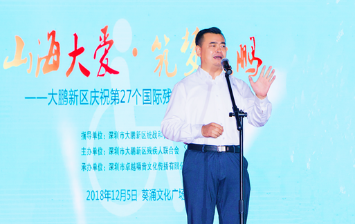 活動(dòng)的總策劃、著名詩人、深圳市大鵬新區(qū)統(tǒng)戰(zhàn)和社會(huì)建設(shè)局常務(wù)副局長、大鵬殘聯(lián)理事長白凌先生說:山海般的大愛來自美麗的深圳大鵬,身殘志堅(jiān)的人士在此筑夢、追夢直到實(shí)現(xiàn)夢想!這是2018年大鵬新區(qū)紀(jì)念“國際殘疾人日”大型活動(dòng)的目的所在。