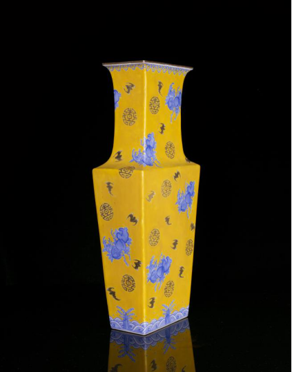 清·光緒黃釉藍(lán)料彩福壽紋方瓶成交價(jià)208000元