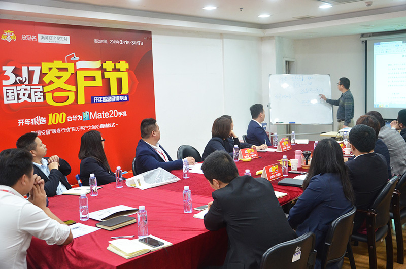 國(guó)安居常務(wù)副總經(jīng)理鄧劍峰、各店老總和總部策劃精英齊聚一堂