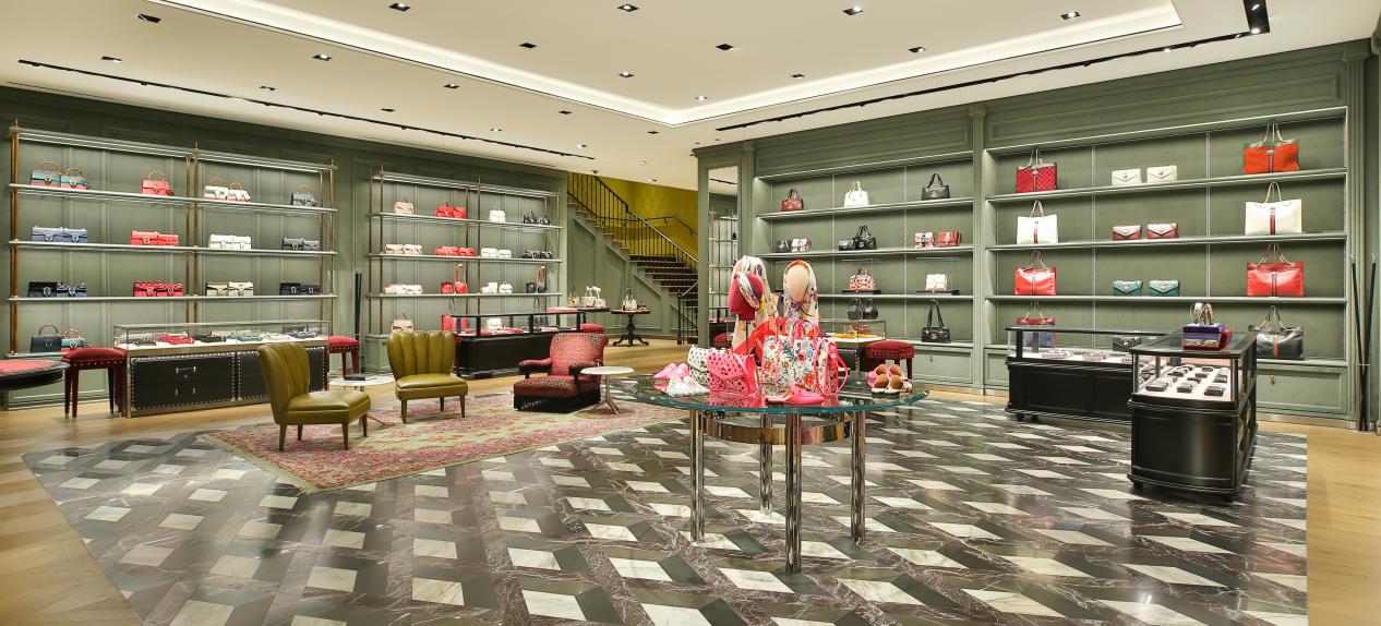 近日,古馳深圳萬(wàn)象城店重裝開(kāi)幕,呈現(xiàn)創(chuàng)作總監(jiān)亞力山卓 ·米開(kāi)理的店鋪設(shè)計(jì)理念。