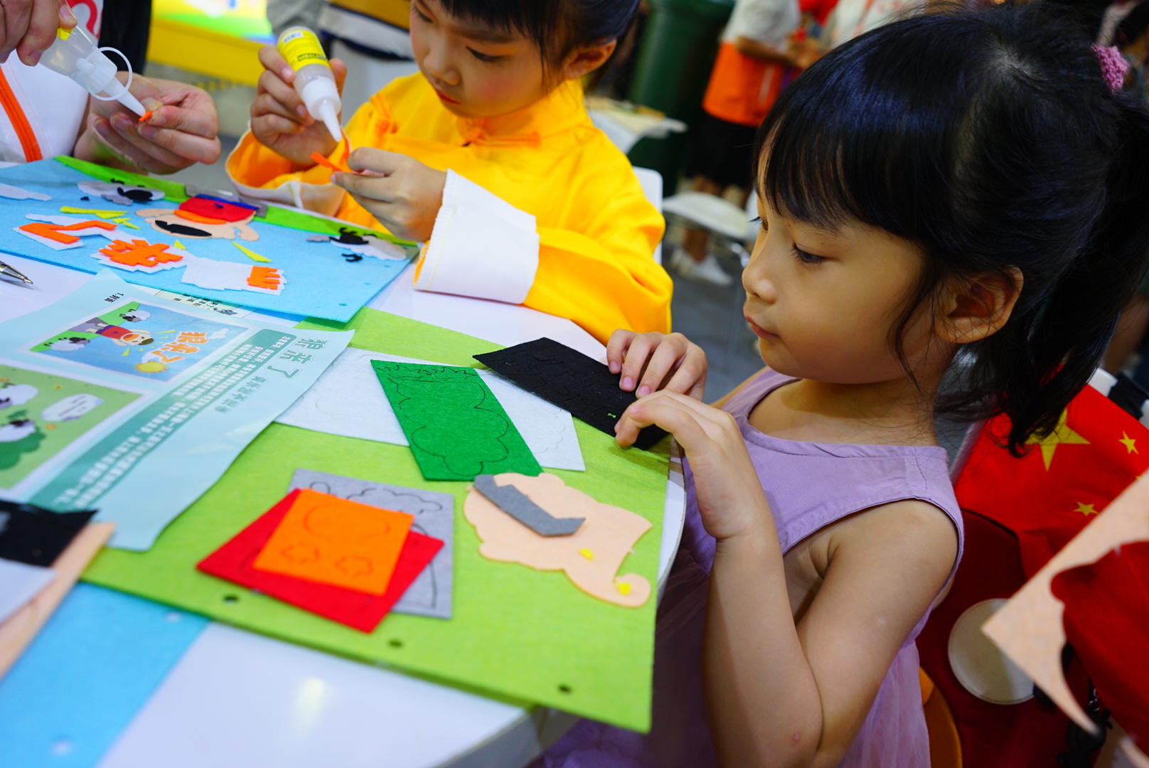 在“手工布書(shū)制作”體驗(yàn)區(qū),志愿者耐心地引領(lǐng)兒童制作專屬自己的一本不織布手工書(shū),感受動(dòng)手及閱讀帶來(lái)的另一種快樂(lè)。