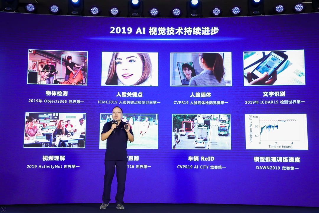 隨后,丁二銳基于更好效果的算法創(chuàng)新和更高性能的模型壓縮兩個(gè)方面,詳細(xì)介紹了百度人臉識(shí)別基礎(chǔ)技術(shù)的領(lǐng)先性,并從交互升級(jí)和軟硬結(jié)合兩方面講述了人臉識(shí)別的應(yīng)用趨勢(shì)。據(jù)丁二銳介紹,2019年百度大腦基礎(chǔ)AI視覺(jué)技術(shù)取得了很好的成績(jī),在CVPR和ICCV等視覺(jué)頂會(huì)及比賽上,百度視覺(jué)技術(shù)團(tuán)隊(duì)取得了數(shù)十項(xiàng)冠軍,其中在人臉?lè)较?,關(guān)鍵點(diǎn)、活體、檢測(cè),識(shí)別就有四項(xiàng)冠軍。