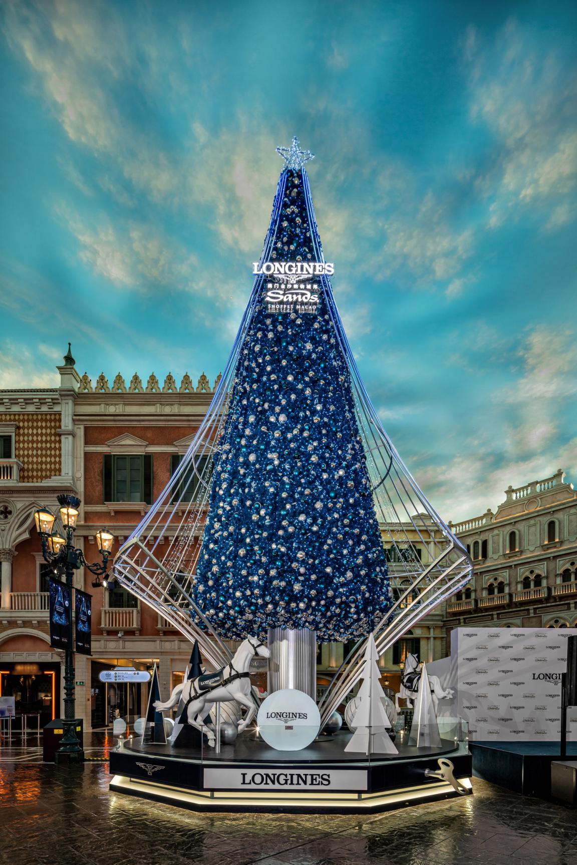 亮燈儀式于威尼斯人購(gòu)物中心圣馬可廣場(chǎng)舉行,影視明星鐘嘉欣受邀出席,并與浪琴澳門(mén)副總裁鄭美齡、金沙中國(guó)有限公司零售市場(chǎng)推廣副總裁Rita Simonetta及金沙中國(guó)有限公司商場(chǎng)管理部總監(jiān)梁俊強(qiáng)一同啟動(dòng)高達(dá)13米的藍(lán)色菱形圣誕樹(shù)底部的音樂(lè)盒裝置。
