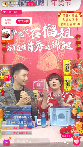 2020年伊始,“風華絕代”的石榴姐苑瓊丹在蘇寧易購開始了新年帶貨直播首秀,為全網(wǎng)用戶推薦實用年貨,超過100萬人“圍觀”了直播,兩小時帶貨超10萬件,平均每分鐘售出800件年貨,其中最受消費者歡迎的來伊份潮吉多堅果禮盒59秒售罄,創(chuàng)下2020年明星帶貨的新記錄!