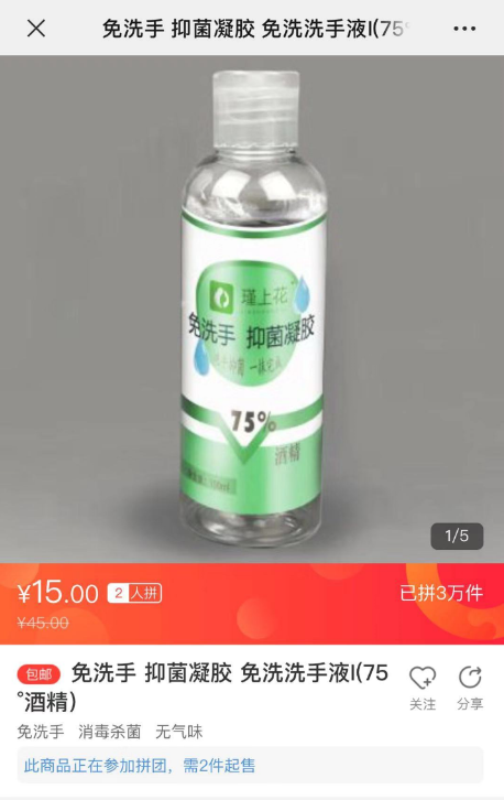 春節(jié)假期進(jìn)入尾聲后,有少部分工廠陸續(xù)復(fù)工。其中有一家來(lái)著于蘇寧“拼工廠”的河北企業(yè)與蘇寧拼購(gòu)?fù)献?,開(kāi)足馬力,全力生產(chǎn)酒精含量為75%的免洗手抑菌凝膠。據(jù)蘇寧拼購(gòu)相關(guān)負(fù)責(zé)人介紹:“蘇寧將根據(jù)最近疫情消費(fèi)數(shù)據(jù)指導(dǎo)該‘拼工廠’生產(chǎn),預(yù)估未來(lái)幾天銷量,讓工廠效率達(dá)到最大?!睋?jù)悉,該款“75%免洗手抑菌凝膠”商品僅2月2日上半日便拼出3萬(wàn)單。河北“拼工廠”負(fù)責(zé)人表示,目前產(chǎn)能能達(dá)到日均20萬(wàn)瓶。