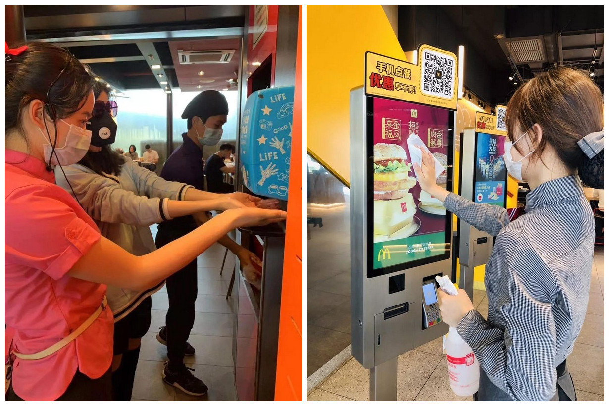 據(jù)了解,目前全國所有的麥當(dāng)勞餐廳啟動上班員工測溫流程,并提高員工洗手消毒頻次,全國餐廳全員佩戴口罩。在餐廳為顧客提供免洗洗手液,對所有餐廳的通風(fēng)系統(tǒng)和顧客常接觸的設(shè)施,強(qiáng)化消毒并增加頻次,包括大門把手、自助點(diǎn)餐屏、樓梯扶手、柜臺臺面、取餐區(qū)、桌椅、餐盤、兒童椅、兒童樂園等。