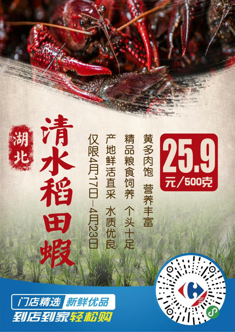 15號開始捕撈的這批湖北“清水稻田蝦”將于16號完成分揀裝車,發(fā)往家樂福全國各地大倉,17號,家樂福位于北京,上海、哈爾濱,長沙,成都,昆明,廣州,深圳等地的155家門店鮮活開售,恰逢家樂福418購物節(jié),嘗鮮價低到25.9元/500克(僅限4月17日至23日)。同時,顧客還可以通過家樂福小程序、蘇寧易購app、蘇寧小店App、及美團(tuán)、餓了么下單,享受1小時送到家的極致“鮮“體驗(yàn)。