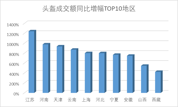 (頭盔成交額增幅TOP10地區(qū))