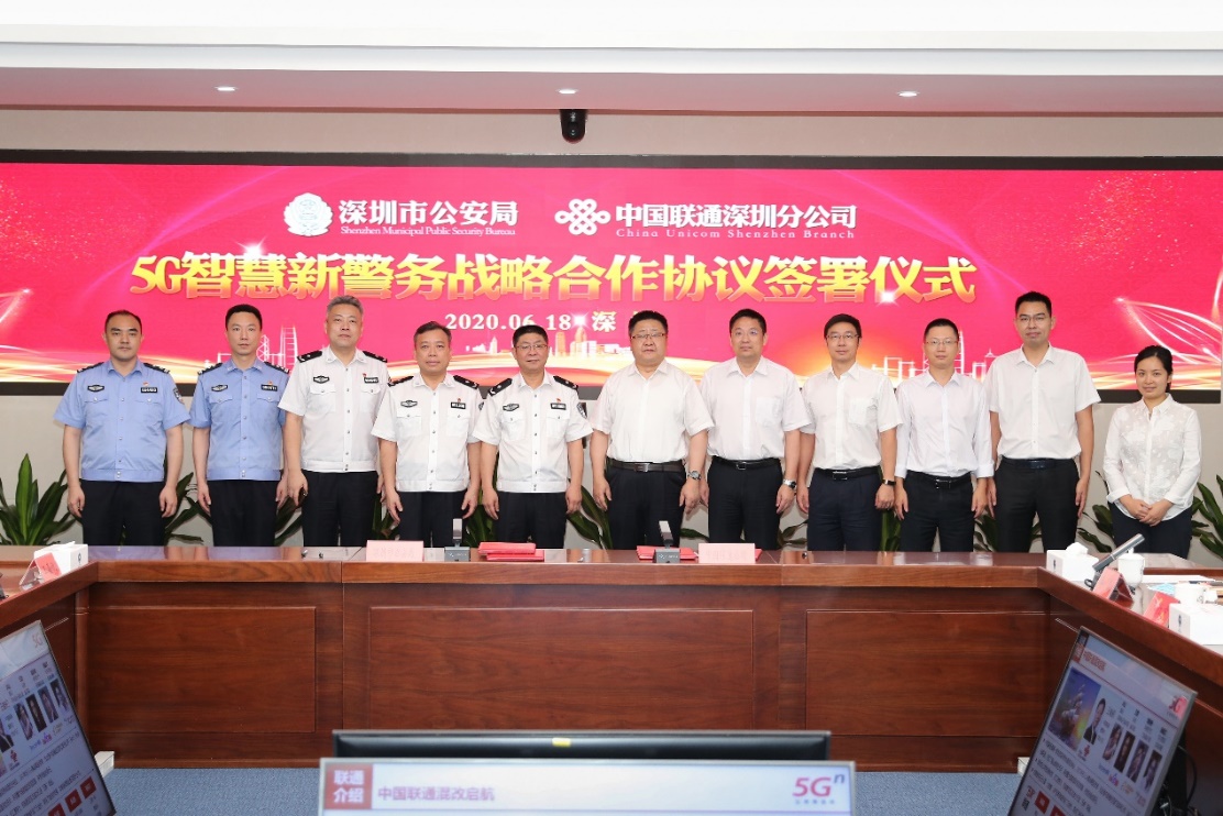 見圳客戶端·深圳新聞網(wǎng)2020年6月19日訊 昨日上午,深圳市公安局與深圳聯(lián)通在市公安局指揮大樓簽署5G智慧警務(wù)應(yīng)用戰(zhàn)略合作協(xié)議,攜手探索5G智慧警務(wù)應(yīng)用,打造平安城市名片。深圳市公安局黨委委員、副局長景文,深圳聯(lián)通黨委書記、總經(jīng)理張海濤代表雙方簽署協(xié)議。