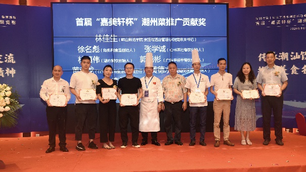 廣東省政協(xié)原副主席李統(tǒng)書、深圳市商務局服貿(mào)處周林副處長、深圳市社會組織總會聯(lián)合黨委張武波副書記、韓山師范學院烹飪與酒店管理學院黨總支書記林佳生、深圳市綠航星際太空科技研究院院長許楫、汕頭市酒店配套行業(yè)協(xié)會監(jiān)事長許翔、中國烹飪大師劉宗桂、陳瑜明、深圳市飲食服務行業(yè)協(xié)會執(zhí)行會長馬培厚、深圳市潮汕文化研究會會長黃惠生、嘉美軒飲食集團總裁張品關等嘉賓代表出席活動。本次大賽吸引了來自深圳、廣州、惠州、潮汕地區(qū)餐飲界22支參賽隊伍,是深圳市經(jīng)濟特區(qū)成立四十周年以來,首次潮州菜本幫菜系的行業(yè)烹飪技能競賽活動。