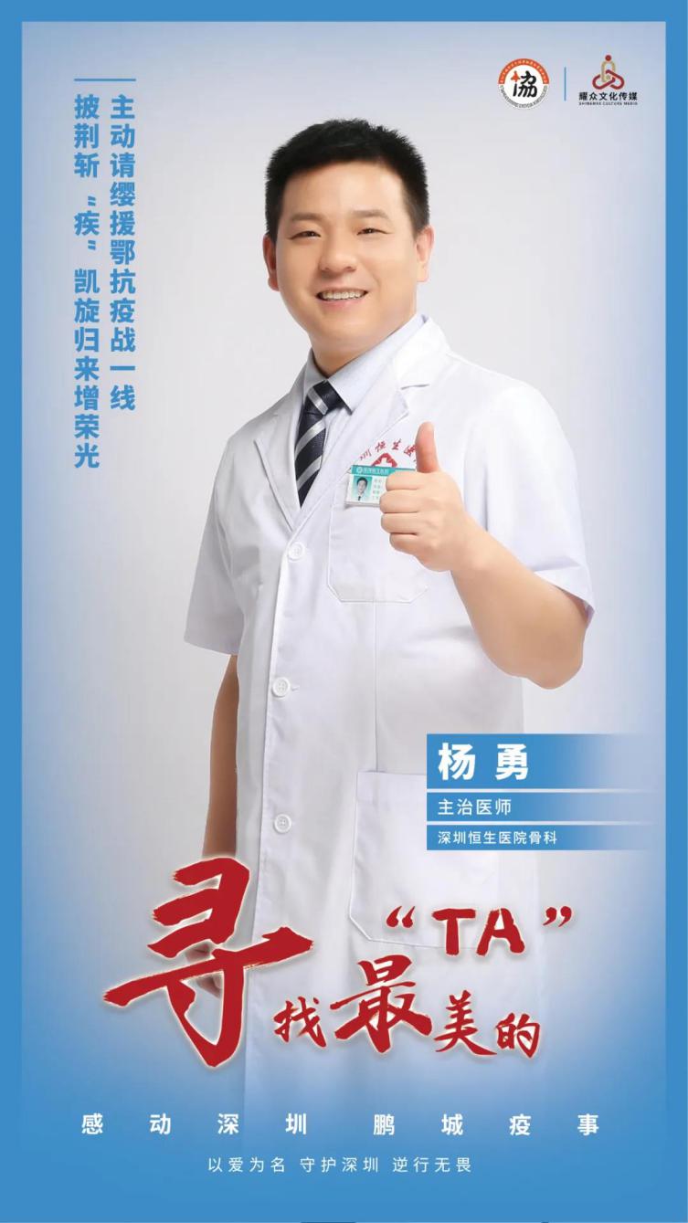 深圳恒生醫(yī)院作為社會(huì)辦三級(jí)綜合醫(yī)院,不僅被列入深圳49家設(shè)立發(fā)熱門診的醫(yī)院,同時(shí)也是首家派遣醫(yī)護(hù)隊(duì)援鄂的社會(huì)辦醫(yī)院。而楊勇,即首批堅(jiān)決主動(dòng)請(qǐng)戰(zhàn)、帶隊(duì)赴荊斬疾的優(yōu)秀黨員醫(yī)生代表。