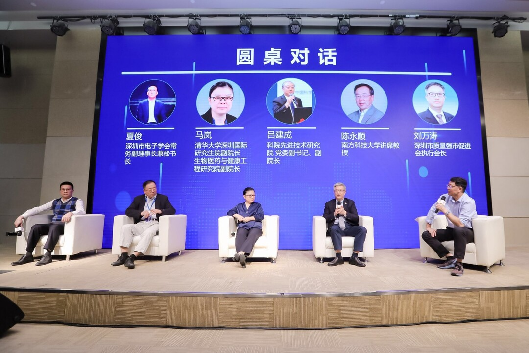在圓桌對話環(huán)節(jié),深圳市電子學(xué)會常務(wù)副理事長兼秘書長夏俊、深圳市質(zhì)量強(qiáng)市促進(jìn)會執(zhí)行會長劉萬濤等嘉賓以“學(xué)科發(fā)展、科技進(jìn)步、人才成長和科學(xué)普及等方面的作用”為主題展開交流與討論。