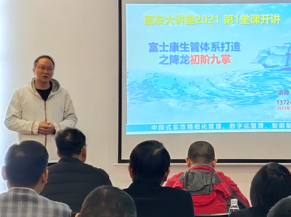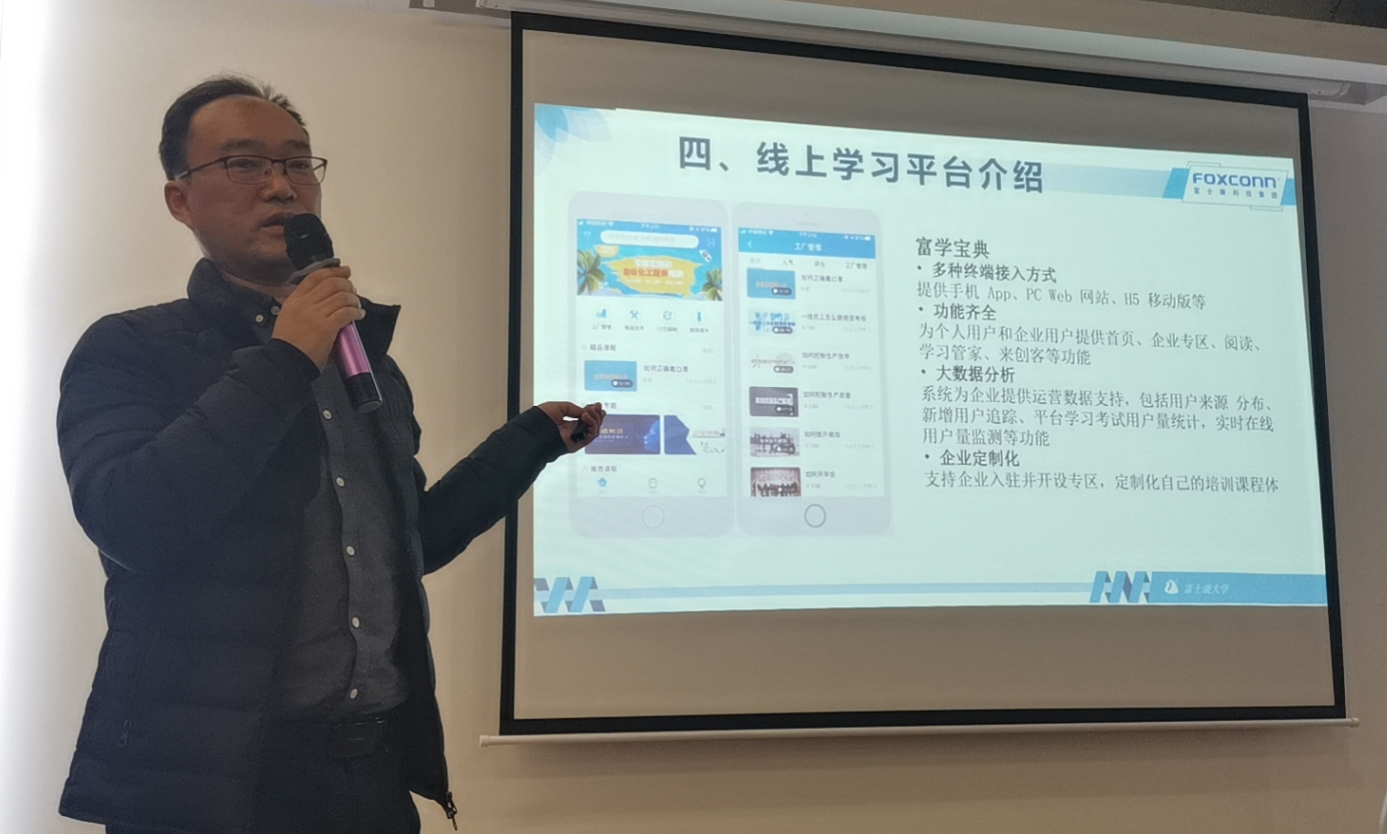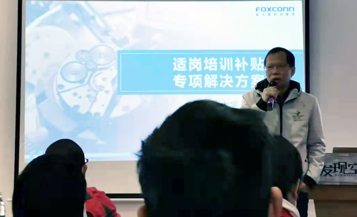 富士康大學(xué)資深專(zhuān)理李治佑帶來(lái)了適崗培訓(xùn)補(bǔ)補(bǔ)貼的專(zhuān)項(xiàng)解決方案,李專(zhuān)理表示,富士康大學(xué)會(huì)開(kāi)放更多的課程資源,賦能富友制造企業(yè),促進(jìn)灣區(qū)制造企業(yè)筑基升級(jí)。