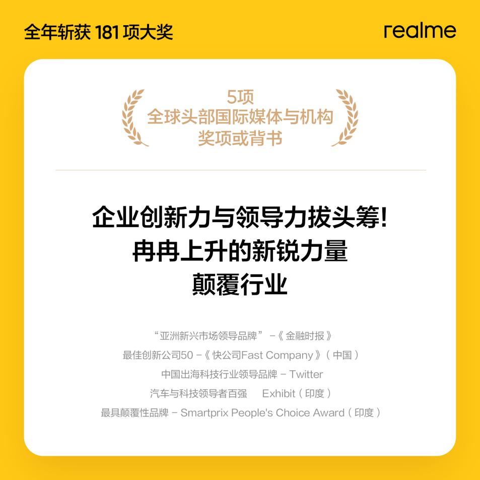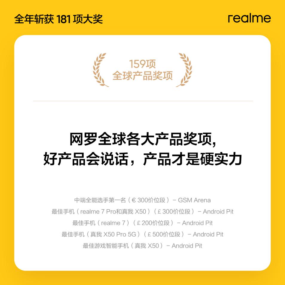 產(chǎn)品是企業(yè)發(fā)展的硬實(shí)力, realme真我斬獲全球181個(gè)獎(jiǎng)項(xiàng)