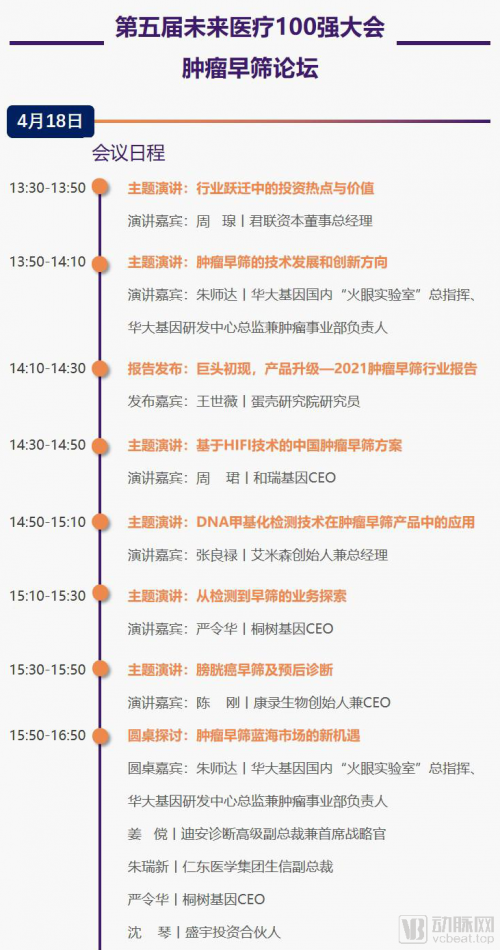 中國網(wǎng)2021年4月8日訊 2021年4月16-18日,以“生命的計算”為主題的第五屆未來醫(yī)療100強大會即將在蘇州·吳江舉辦。本屆大會由動脈網(wǎng)聯(lián)合蘇州市吳江區(qū)人民政府等共同舉辦,全面展示中國醫(yī)療健康領(lǐng)域的創(chuàng)新生態(tài),打造產(chǎn)業(yè)生態(tài)的交匯融合。據(jù)悉,此次大會邀請了頂級嘉賓陣容——中國科學院院士、IEEE科學家領(lǐng)銜200+大咖嘉賓帶來3天前沿的醫(yī)療科技、行業(yè)趨勢與商業(yè)創(chuàng)新。華大基因國內(nèi)“火眼實驗室”總指揮、華大基因研發(fā)中心總監(jiān)兼腫瘤事業(yè)部負責人朱師達博士受邀出席腫瘤早篩論壇。