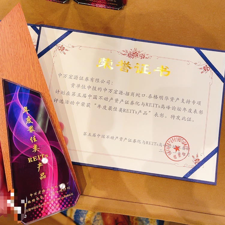 與招商蛇口申報基礎(chǔ)設(shè)施公募REITs同時,由中國房地產(chǎn)業(yè)協(xié)會聯(lián)合中國REITs聯(lián)盟等主辦的“第五屆中國不動產(chǎn)資產(chǎn)證券化與REITs高峰論壇”上,憑借申萬宏源-招商蛇口-泰格明華資產(chǎn)支持專項計劃,招商蛇口獲評為“最佳原始權(quán)益人”,泰格明華項目獲得“年度最佳類REITs產(chǎn)品”獎項。