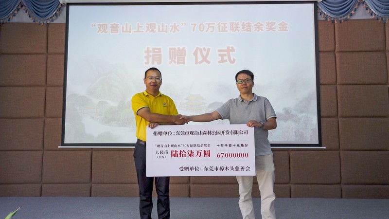 見圳客戶端·深圳新聞網(wǎng)2021年5月18日訊(記者 常軍平)“觀音山上觀山水”70萬(wàn)征聯(lián)活動(dòng)終有結(jié)果,評(píng)選出15句優(yōu)秀下聯(lián),最佳下聯(lián)空缺,并于5月17日在東莞觀音山舉行了頒獎(jiǎng)儀式及妙聯(lián)品鑒座談會(huì)?;顒?dòng)現(xiàn)場(chǎng),楹聯(lián)家們雅聚一堂,共同見證了本次征聯(lián)活動(dòng)優(yōu)秀獎(jiǎng)的頒出。以楹聯(lián)為媒,進(jìn)行交流互動(dòng)。活動(dòng)期間,組委會(huì)代表東莞觀音山將結(jié)余款項(xiàng)67萬(wàn)元悉數(shù)捐給東莞樟木頭鎮(zhèn)慈善會(huì)。鑒于觀音山在推動(dòng)楹聯(lián)文化的傳承發(fā)展做出的突出貢獻(xiàn),被中國(guó)楹聯(lián)學(xué)會(huì)授予“中國(guó)楹聯(lián)文化名山”稱號(hào)。