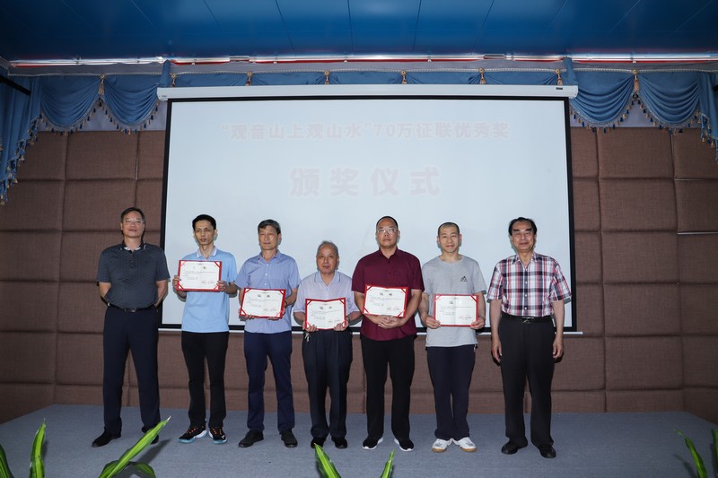 經(jīng)廣東楹聯(lián)學(xué)會(huì)研究決定,授予廣東觀音山國(guó)家森林公園“廣東省楹聯(lián)文化示范山”榮譽(yù)稱號(hào),并在活動(dòng)現(xiàn)場(chǎng)進(jìn)行授牌。中國(guó)楹聯(lián)學(xué)會(huì)會(huì)長(zhǎng)助理、廣東楹聯(lián)學(xué)會(huì)會(huì)長(zhǎng)曾建國(guó)代表廣東楹聯(lián)學(xué)會(huì),進(jìn)行授牌。