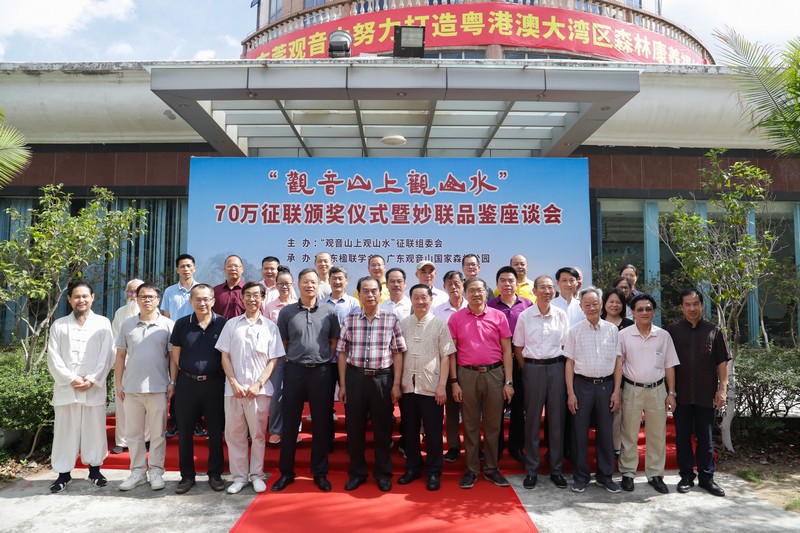 為尋求最佳下聯(lián),以壯觀音山景區(qū)山門,2019年11月7日由廣東楹聯(lián)學(xué)會(huì)與廣東觀音山國(guó)家森林公園共同推出70萬(wàn)征集“觀音山上觀山水”最佳下聯(lián)活動(dòng)。本次征聯(lián)活動(dòng)面向全球展開,一經(jīng)推出,受到廣泛關(guān)注和投稿參與。