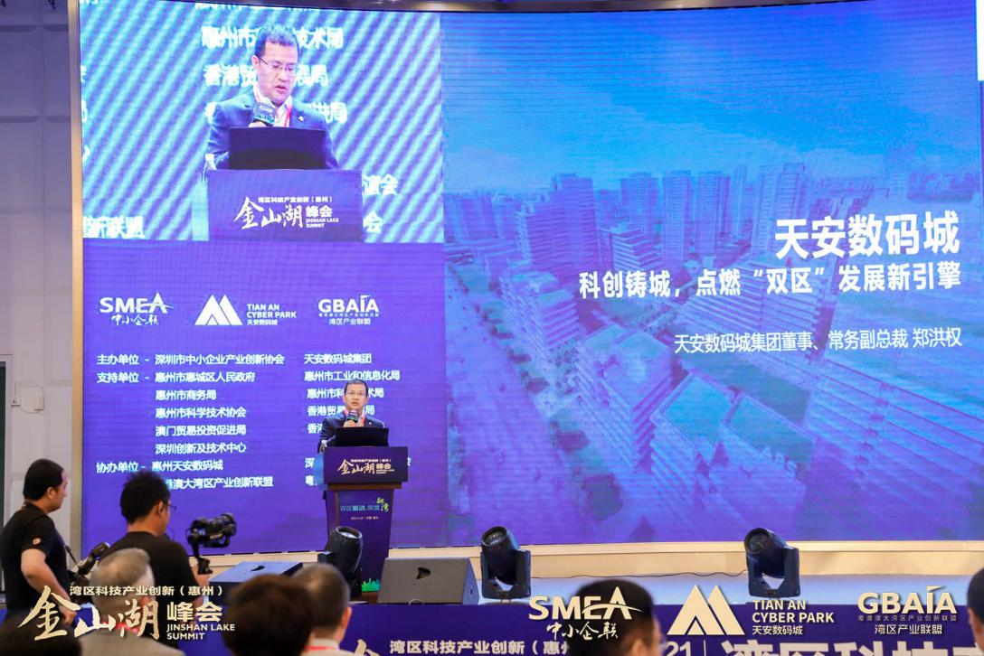 “‘雙區(qū)’建設是國家領導人和黨中央部署的重大國家戰(zhàn)略,作為粵港澳大灣區(qū)重要節(jié)點和深圳都市圈重要成員,全力支持、積極融入既是惠州鮮明的政治態(tài)度,也是惠州發(fā)展的必然抉擇。相信在惠州市及各級政府部門支持下,深圳市中小企業(yè)產(chǎn)業(yè)創(chuàng)新協(xié)會、天安數(shù)碼城集團強強攜手,與各方合作伙伴共同努力,通過每年一屆的“灣區(qū)產(chǎn)業(yè)創(chuàng)新(惠州)金山湖峰會”深入落實創(chuàng)新驅動發(fā)展戰(zhàn)略,匯聚粵港澳大灣區(qū)產(chǎn)業(yè)創(chuàng)新資源,深化粵港澳創(chuàng)新合作,助力惠州與灣區(qū)城市間的產(chǎn)業(yè)創(chuàng)新與協(xié)同發(fā)展。