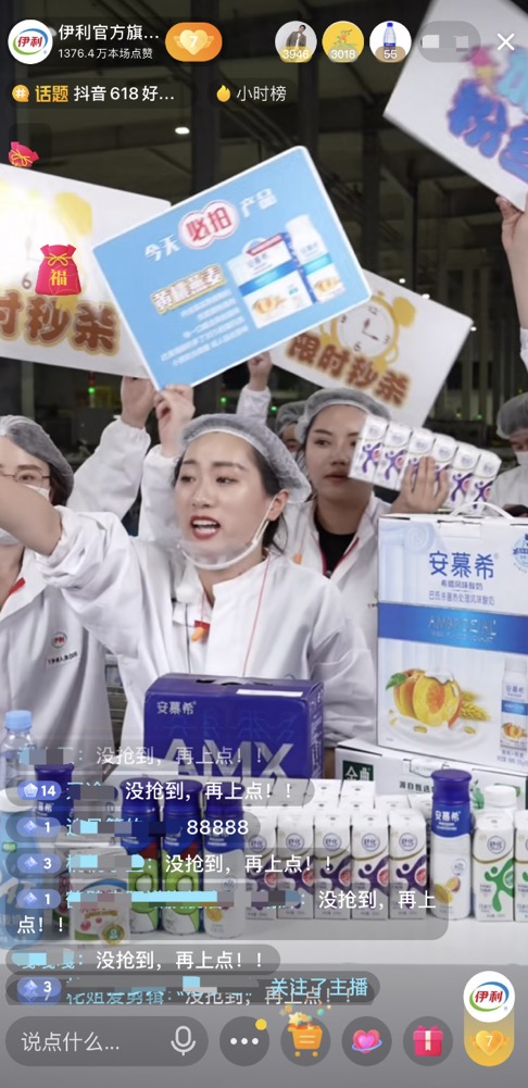 同時,伊利洞察到消費(fèi)者對產(chǎn)品品質(zhì)的關(guān)注,和直播間消費(fèi)者一起深入伊利工廠,直接在好奶的源頭開啟溯源直播,極大地滿足了消費(fèi)者所見即所得的需求,同時也提升了直播的可看性,充分契合了興趣電商的內(nèi)核。這種新穎的直播模式最終創(chuàng)造了連續(xù)霸屏帶貨小時榜5小時的自播紀(jì)錄,在618當(dāng)天實(shí)現(xiàn)了抖音行業(yè)單日自播榜第一,單日銷售額破千萬的傲人成績。
