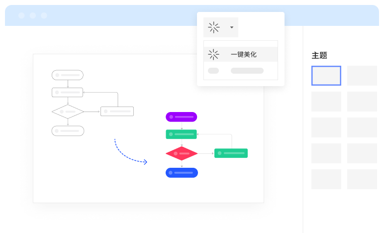 為了賦能繪圖效率,億圖圖示11.0版本還新增了“一鍵美化”功能,進一步提升產(chǎn)品的易用性,真正做到“把簡單留給用戶,把復(fù)雜留給自己”。